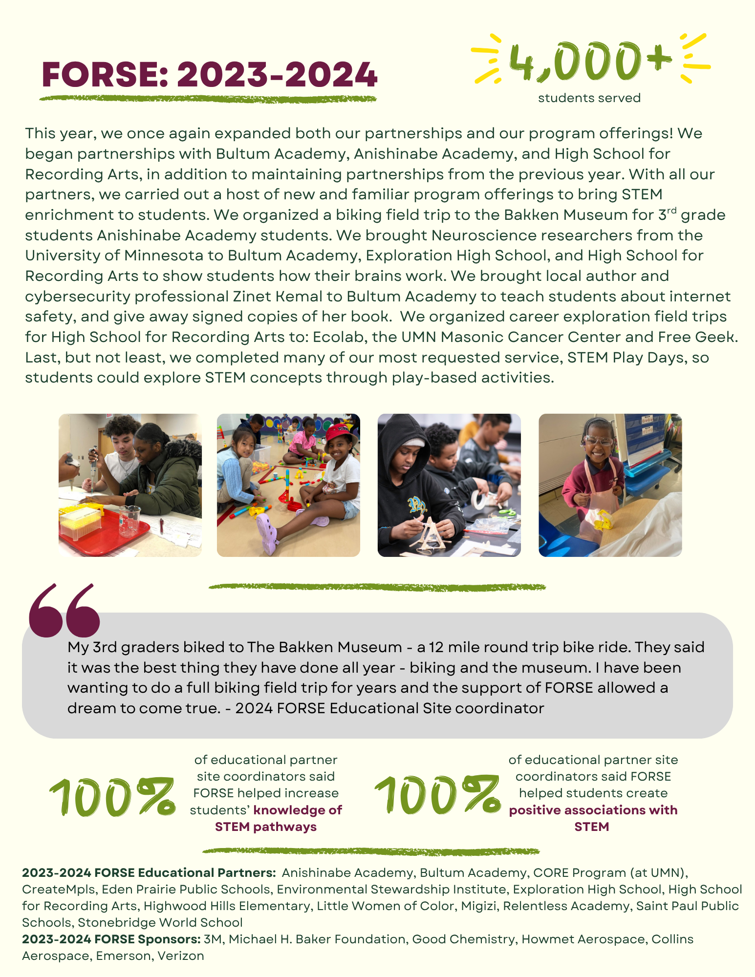 Through FORSE, MAS seeks to address persistent opportunity gaps in STEM education in Minnesota, diversify our programs, and open doors to STEM majors and careers for Minnesota students of all backgrounds.